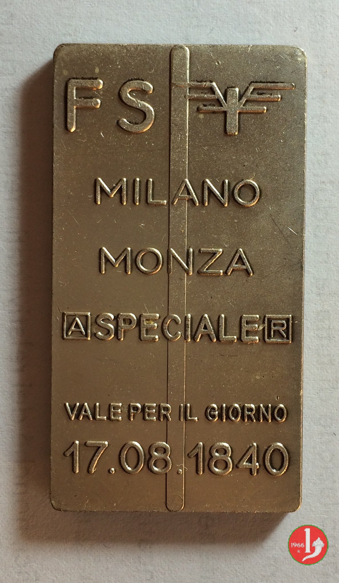 Dritto: FS Milano-Monza biglietto speciale vale per il giorno 17-08-1840