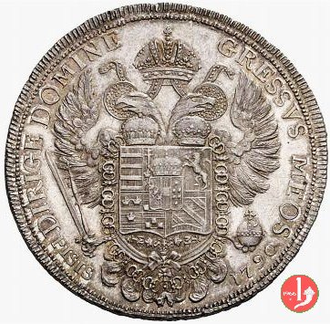 Verso: (da sinistra) DIRIGE DOMINE GRESSVS MEOS stemma a targa barocca coronato, inquartato e coronato, inquartato e caricato di scudetto partito di Lorena, Austria e Toscana, circondato dal collare del Toson d'oro sovrapposto alla croce di S.Stefano e sormontato da corona imperiale.