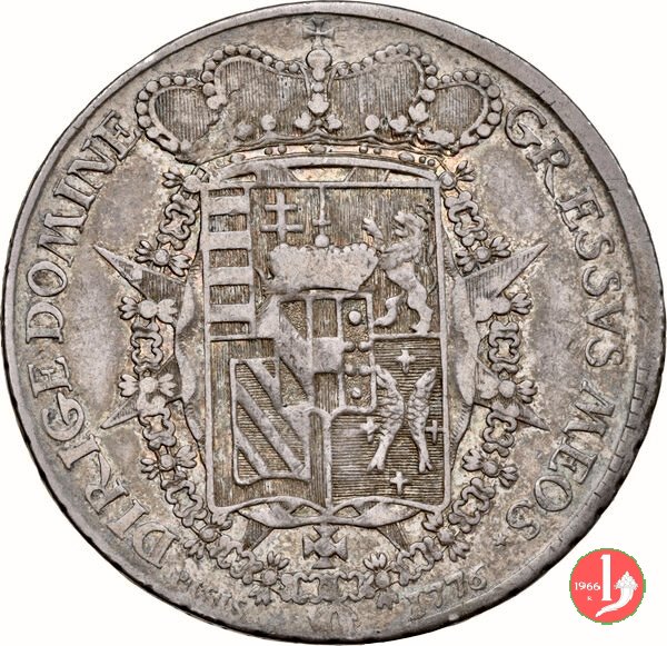 Verso: (da sinistra) DIRIGE DOMINE GRESSVS MEOS stemma di forma sannitica, coronato, inquartato e caricato di scudetto coronato e partito di Lorena, Austria e Toscana, fra due rami d'alloro e di palma decussati. Sotto nel giro PISIS 1790