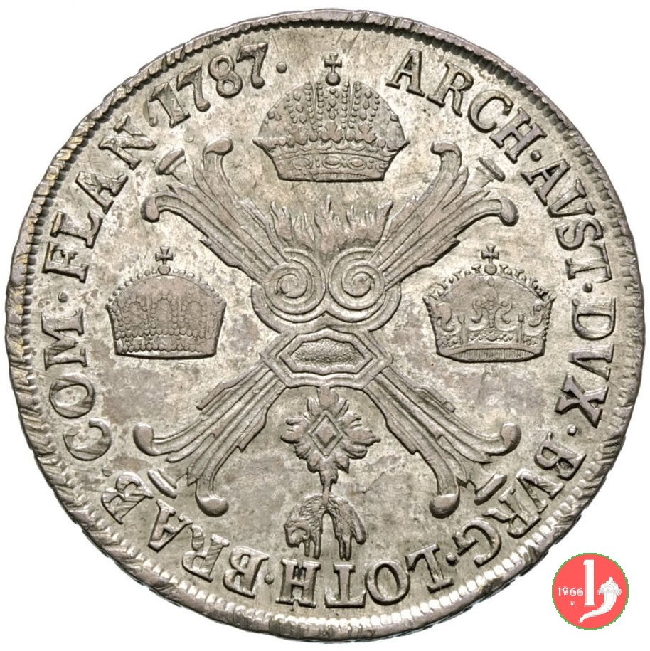 1/2 Tallero delle Corone Dritto: Croce di Borgogna ornata con il Toson d'Oro. Ai lati e sopra, le tre corone reali dell'Impero: Austria, Boemia e Ungheria. Intorno, ARCH • AVST • DVX • BVRG • LOTH • BRAB • COM • FLAN • 1791 •. Verso: Testa dell'Imperatore con corona di alloro a destra, intorno LEOP • II • D • G • R • I • S • A • GER • HIE • HVN • BOH • REX •. In esergo il segno di zecca (M). |