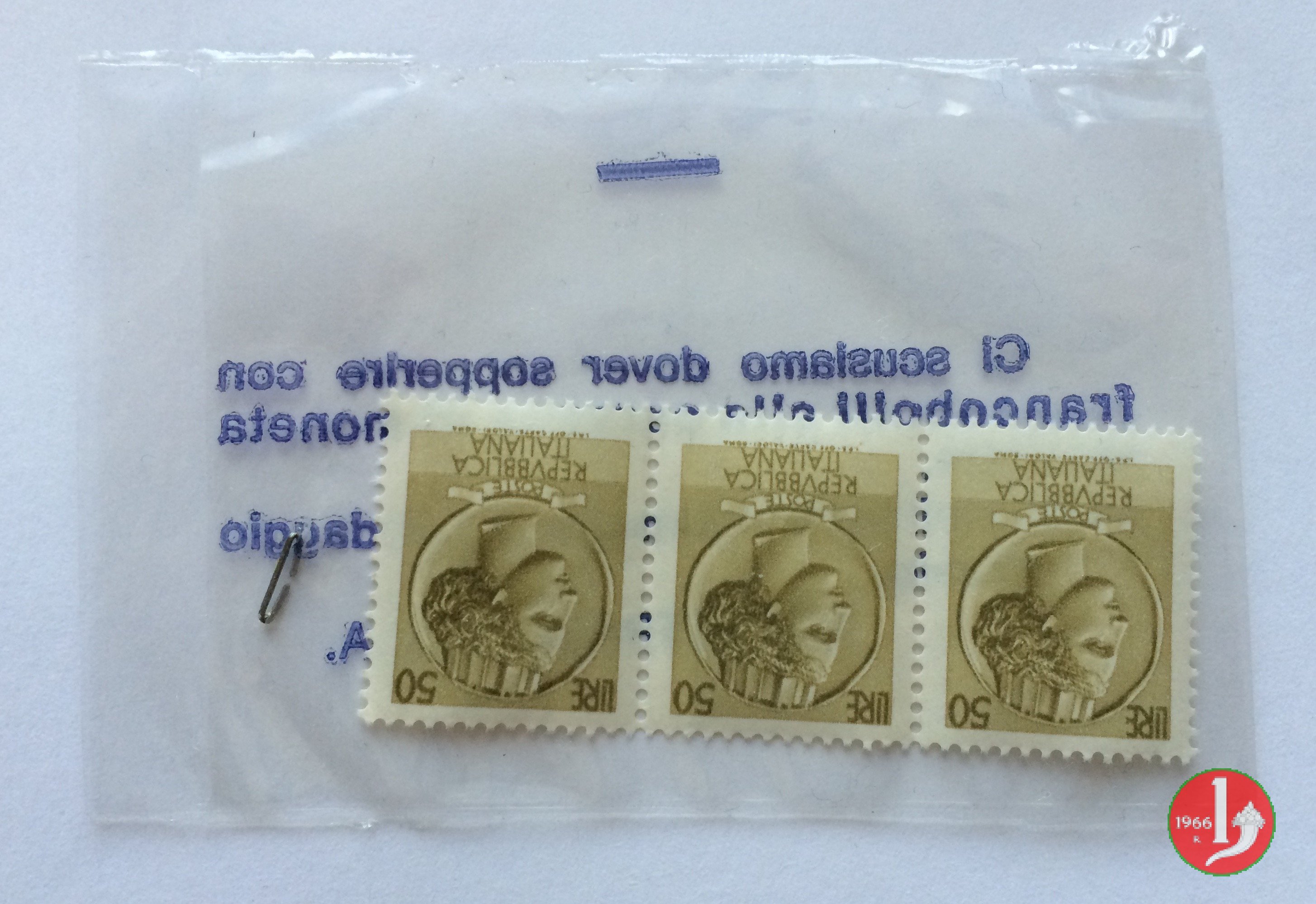 Dritto: francobollo di vari tagli della serie Siracusana incapsulato