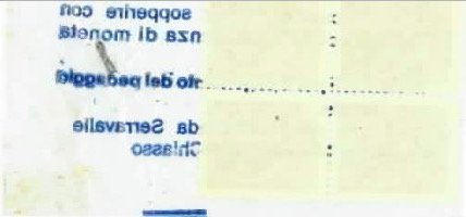 Verso: "Ci scusiamo dover sopperire con francobolli alla carenza di moneta spicciola. Utilizzateli per il pagamento del pedaggio. Grazie A15 AUTOCAMIONALE DELLA CISA"