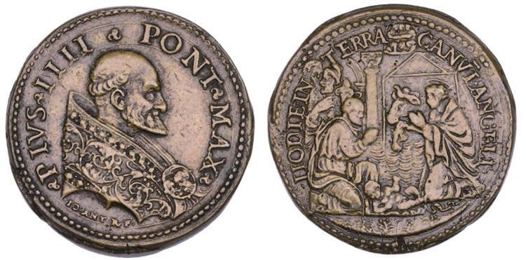 Elezione al pontificato-Natività -Mo511 Dritto: • PIVS • IIII • PONT • MAX • (punti trinacria) Busto a dx con piviale sotto: • IO • ANT • R • F • Scena della Natività | |