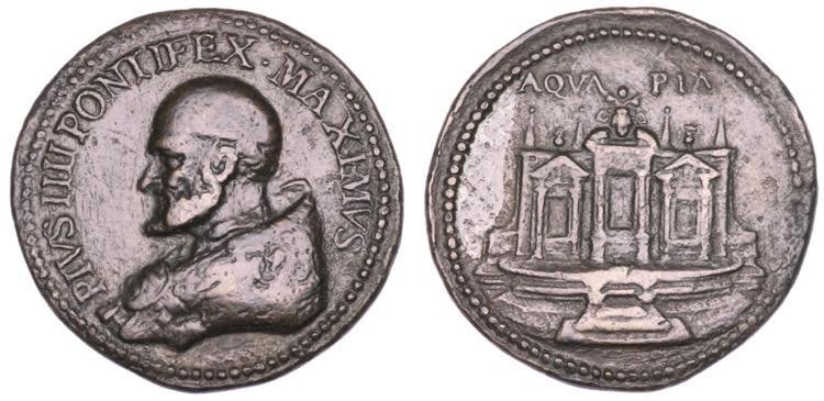 Chiesa di Santa Caterina dei Funari -Mo559 Dritto: PIVS • IIII • PONTIFEX • MAXIMVS busto a sx con piviale Prospetto anteriore della chiesa di Santa Caterina dei Funari in esergo: • MDLXI • | |