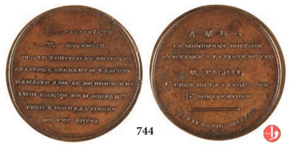 Altare di San Bonaventura a Lione 25-11-1829 Dritto: nel campo: L’AN DE GRACE 1829 = 25 NOVENBRE = SOUS LE PONTIFICAT DE PIE VIII = CHARLES X REGNANT M. L’ARCHEV = D’AMASIE ADM AP DU DIOCESE DE = LYON ASSISTE’ DE M JORDAN 2° = CURE’ A POSE’ LA P PIERRE = DE CET AUTEL Verso: nel campo: A.M.D.G. = CE MONUMENT DOIT SON = EXISTENCE A LA PIETE’ DE FEU = M. PASCAL = 1° CURE’ DE = LA PAROISS DE = St BONAVENTURE = - in basso a semicerchio: DEMAVE OPUS EREXIT | |