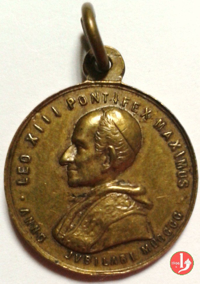 Mnemosynon Dritto: ANNO • JVBILEAEI • MDCD • LEO • PP • XIII busto a sx con berretto, mozzetta e stola sotto: G. GIANI ROMA Stemma papale con triregno e chiavi | |
