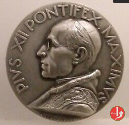 In Ivstitia Pax 45mm -CM133 Dritto: PIVS XII PONTIFEX MAX busto a sx con berretto, mozzetta d'ermellino e stola sotto a dx: V. DI COLBERTALDO Bilancia su ramo d'ulivo e croce in basso a dx: STAB. = LORIOLI | |