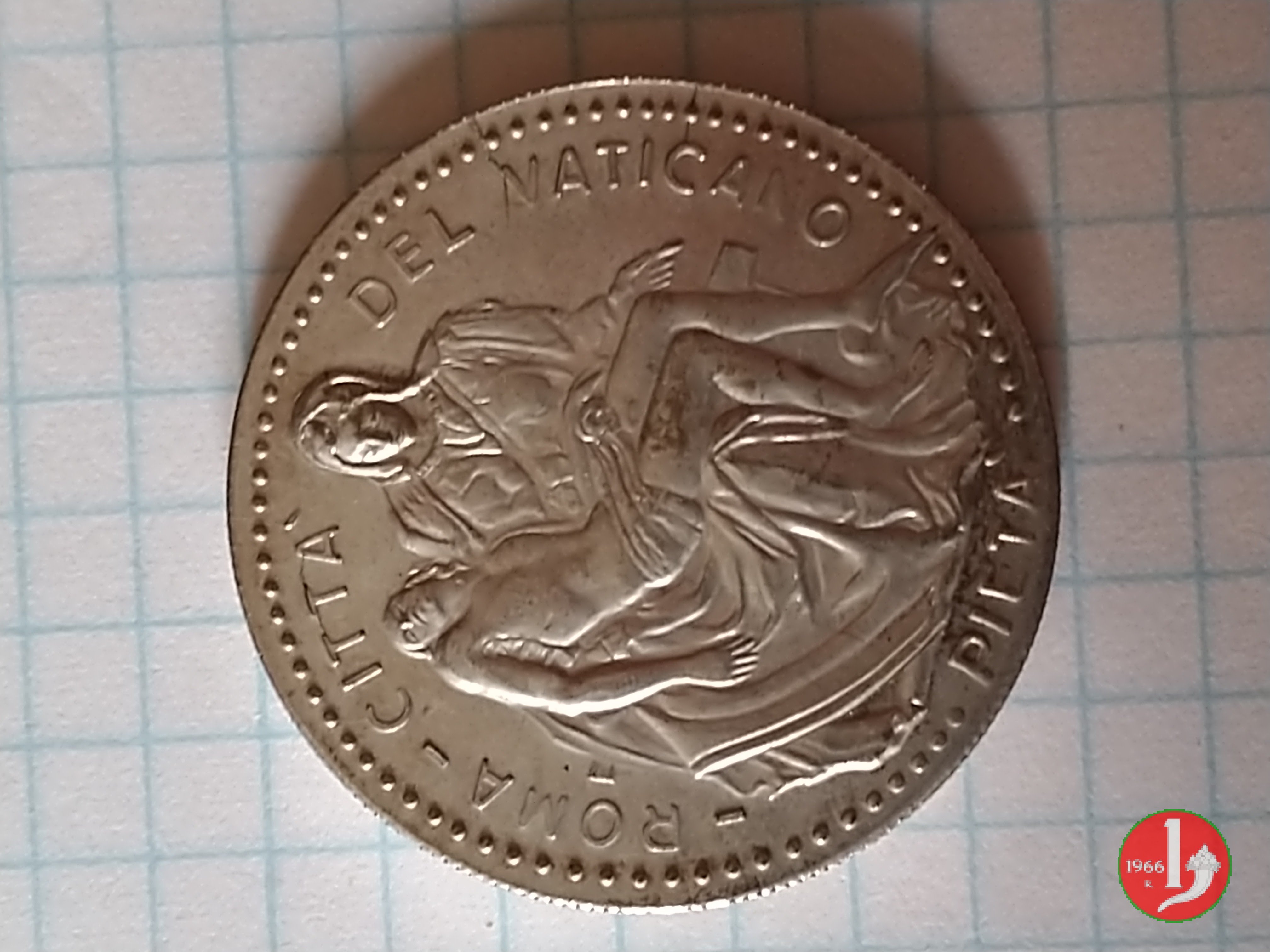 La Pietà di Michelangelo -Mo411 Dritto: JOANNES XXIII PONT. MAX. busto a sx con berretto, mozzetta d'ermellino e stola il gruppo marmoreo de La Pietà di Michelangelo sotto, sul bordo perlinato: PIETA' | |