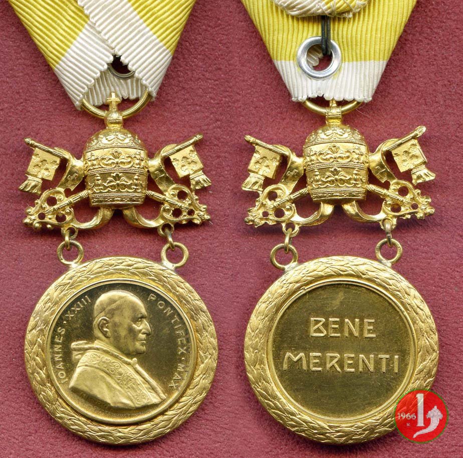 Benemerenti -Mo419-420 Obverse: entro cerchio continuo: JOANNES XXIII _ PONTIFEX MAXIMVS busto a dx con berretto, mozzetta e stola sul taglio spalla: MISTRVZZI | |