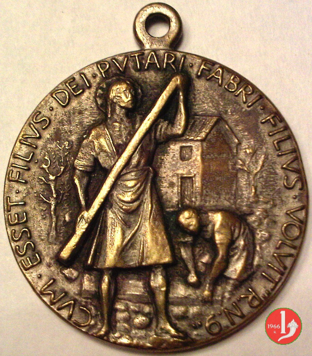 100° Madonna del Perpetuo Soccorso 50mm 1966 Dritto: PAVLVS VI _ PONT • MAX • busto a dx con berretto, mozzetta e stola sotto: DAMIANO COLOMBO & FIGLI • F • MINA • busto della B. v. Maria nimbata, coronata e velata tra due Angeli sorregge il Bambino Gesú nimbato e coronato ai lati verticalmente: 1866 _ 1966 | |