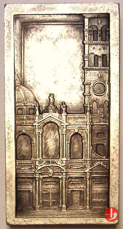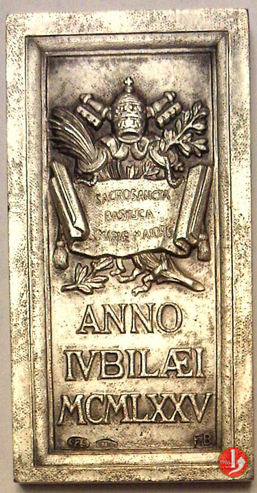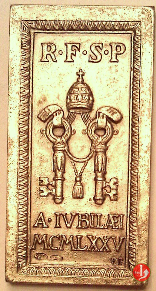 Placchetta Basilica S. Giovanni - Anno Santo Dritto: Cartiglio coronato da triregno e chiavi decussate sotto: ANNO = IVBILAEI = MCMLXXV in basso a dx: F.B. | |