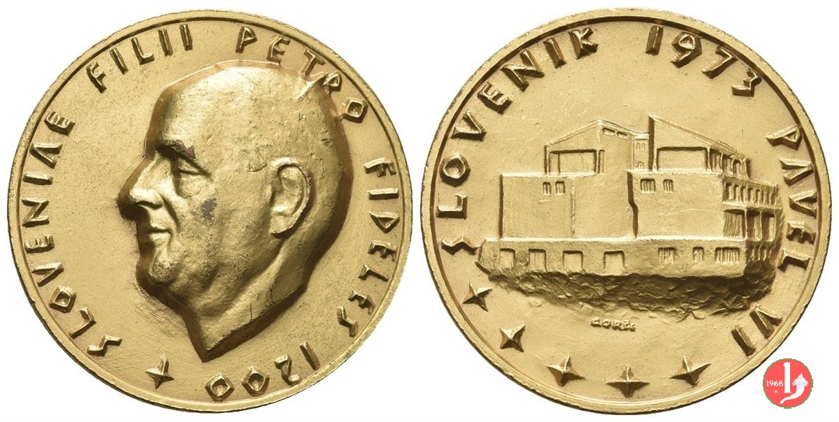 Nuovo Collegio Sloveno in Roma 20-06-1973 Dritto: SLOVENIAE FILII PETRO FIDELES 1200 ✠ Testa a sx con zucchetto Il Nuovo Collegio Sloveno di Roma sotto: GORCE | |