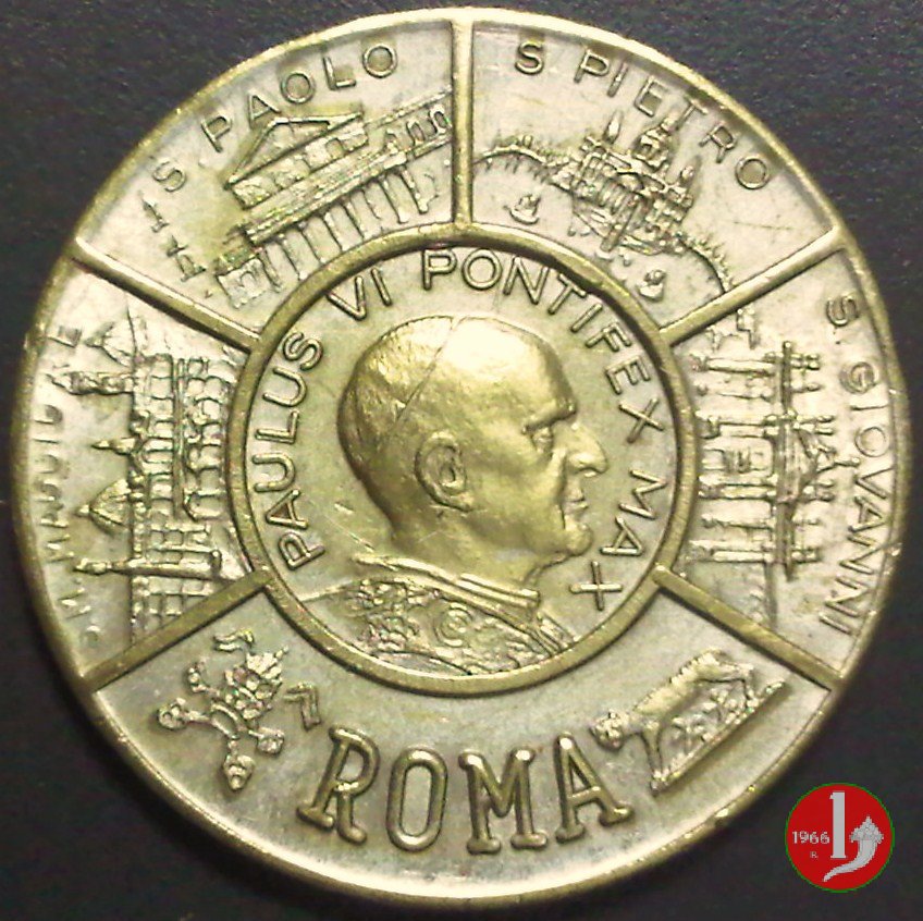 Anno Santo - Croce e Basiliche Patriarcali -MM361 Dritto: PAVLVS • VI • PONTIFEX • MAXIMVS ✠ busto a dx con berretto, mozzetta e stola tra i bracci: prospetti anteriori delle quattro Basiliche Patriarcali | |
