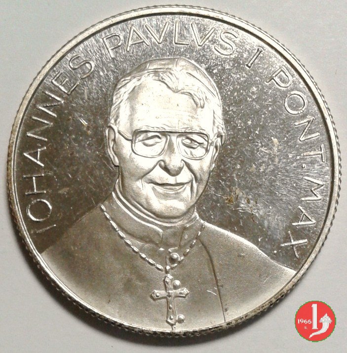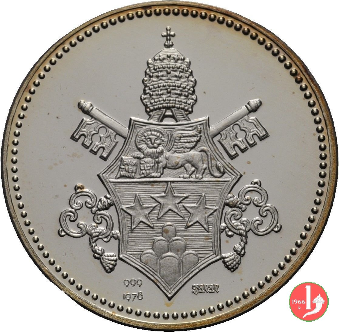 Stemma Papale -MM735 Dritto: busto benedicente di 3/4 a sx con berretto, veste talare e Croce pettorale nel campo a sx: IOHANNES = PAUL I. nel campo a dx: 1912 = 1978 in basso a sx titolo e data: 999 = 1978 | |