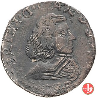tipo 2 Obverse: carro in doppio cerchio perlinato, nel quale rosette pentafille. Reverse: cimiero con testa di moro, a destra e sinistra due F, a ciascun lato della testa F | |