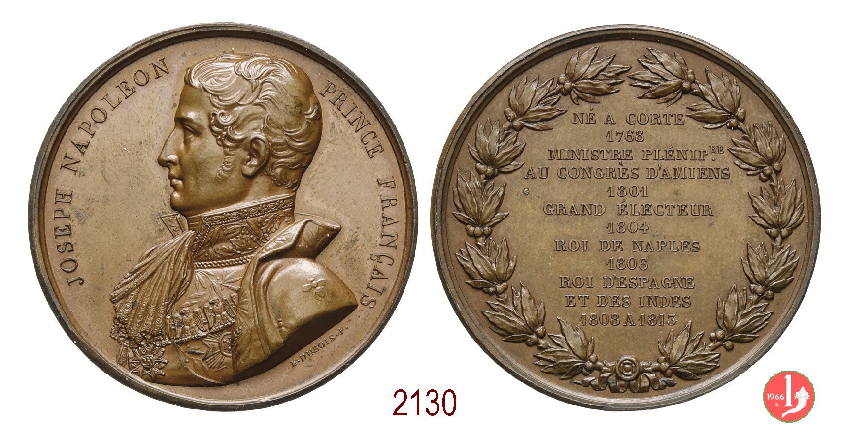 Omaggio a Giuseppe Napoleone -B1304 Dritto: JOSEPH NAPOLEON PRINCE FRANCAIS Busto a sx con collare della Legion d’Onore sotto: E • DUBOIS • F • | |