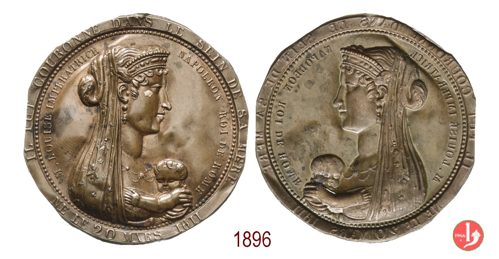 Nascita del Re di Roma 1811 -B1114 Dritto: NAPOLEON LE GRAND MARIE LOUISE D'AUTRICHE busti accollati a dx di Napoleone e Maria Luisa con piccolo busto del Re di Roma tra i due in basso: LE ROI DE ROME | |