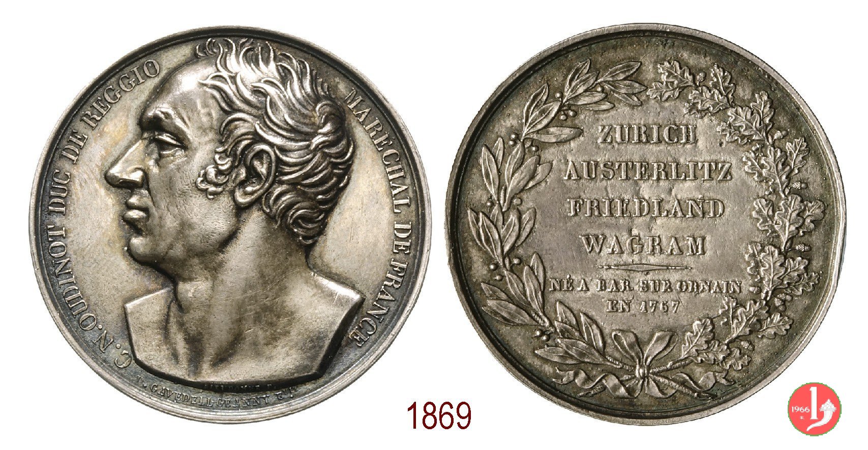 Maresciallo Oudinot -B1053 Dritto: C. N. OUDINOT DUC DE REGGIO _ MARÉCHAL DE FRANCE busto nudo a sx sul taglio del busto: DIEUDONNE F • sotto: D. GAVEDELL GEANNY ÉDIT | |
