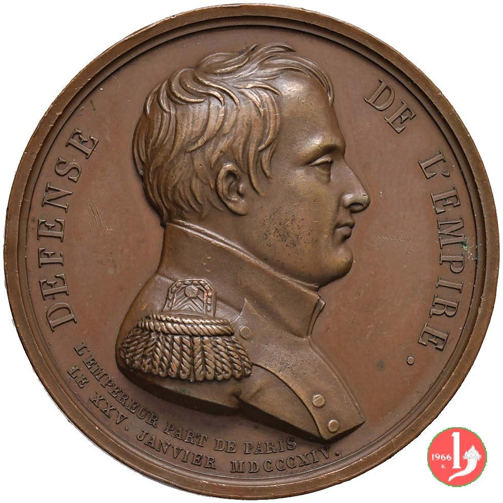 Maria Luisa Reggente 1814 -B1331 Dritto: DEFENSE _ DE L'EMPIRE. busto a dx di Napoleone in divisa militare sotto: L'EMPEREUR PART DE PARIS = LE XXV JANVIER MDCCCXIV. busto diademato a sx di Maria Luisa sotto: XXIII JANVIER MDCCCXIV. | |