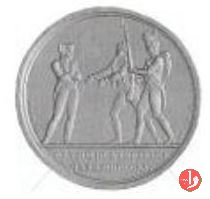 Battaglia di Tolentino 1815 -B1611 Dritto: op. -, Trofeo con elmo corazza stante su quattro bandiere, tra rami di alloro con bacche, aperti in alto e legati alla base. Nel bordo perlinatura Verso: op. -, SIEG / BEI TOLENTINO / DURCH F. M. L. / B. BIANCHI / AM 2-3. MAI / 1815. • Nel bordo perlinatura. | |