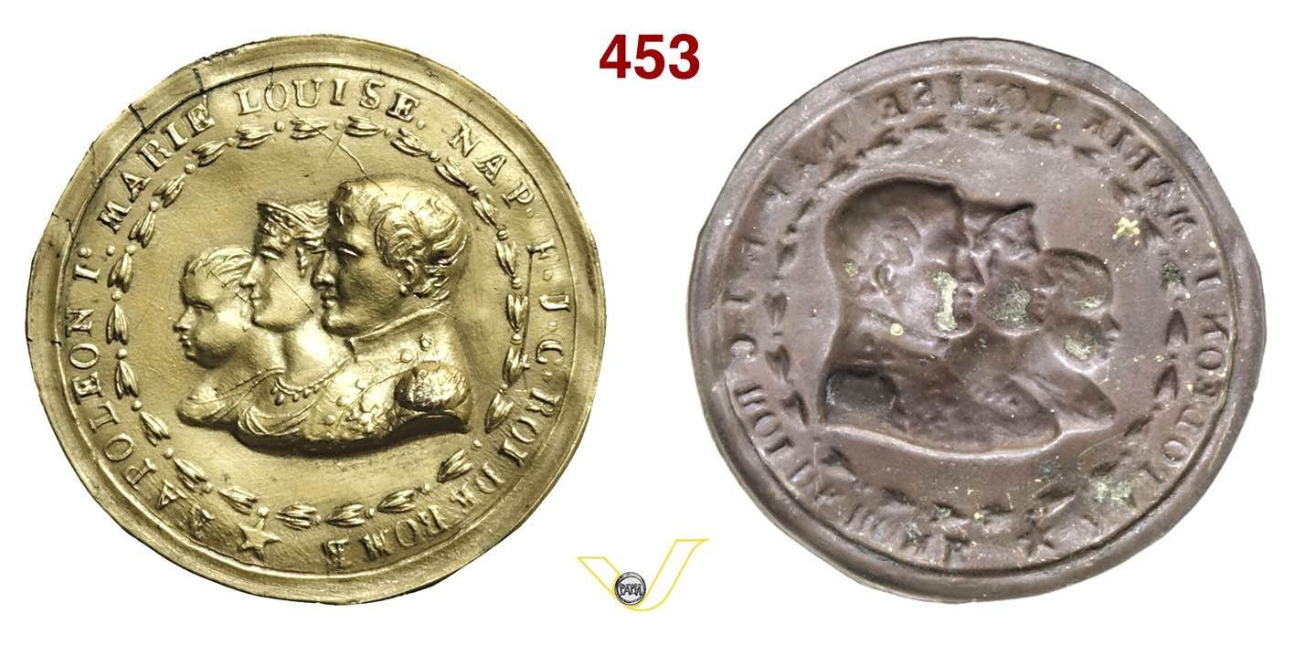 Nascita del Re di Roma 1811 -B1112 Dritto: NAPOLEON I' MARIE LOUISE. NAP. F. J. C. ROI DE ROME entro corona d'alloro: i tre busti accollati a sx | |