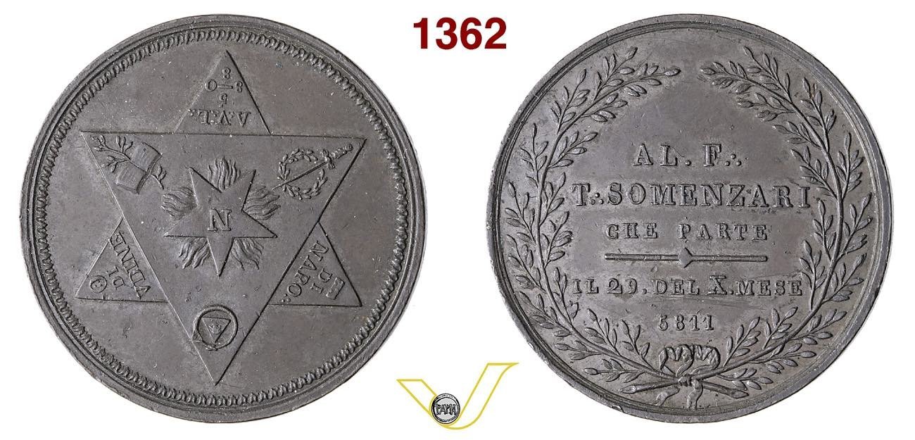 I Cuori Uniti al Re di Roma 1811 -B1122 Dritto: DES COEURS UNIS, O DE PARIS. compasso su squadra e stella raggiante sotto: OL. F. sotto: 7 AVRIL = * 5811 * | |