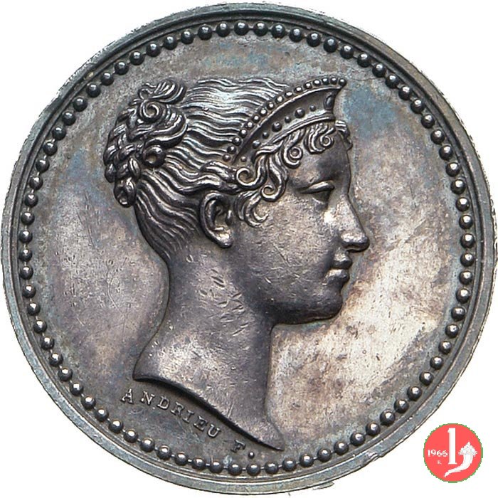 Nascita del Re di Roma 1811 -B1101 Dritto: busti accollati a dx di Napoleone laureato e di Maria Luisa diademata sotto: ANDRIEU F • busto a sx sul taglio spalla: sotto: XX MARS = MDCCCXI • | |