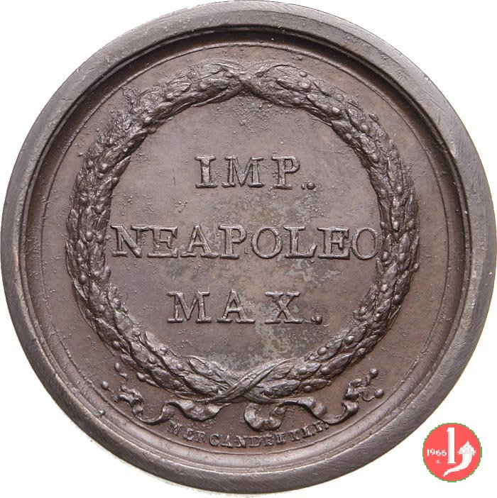 Nascita del Re di Roma 1811 Dritto: entro rami d'alloro legati in basso da nastro: IMP. = NEAPOLEO = MAX. sotto: MERCANDETTI F. | |