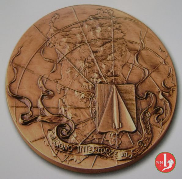 Medaglia del Comando R.S.V. Dritto: Raffigurata la mitica figura di Icaro colta nell'attimo in cui sta per spiccare il volo, araldica del reparto Sperimentale di Volo; davanti tre stelle che rappresentano i tre records mondiali conquistati dal R.S.V. Verso: Nel giro su due righe la scritta HINC PER AETHRAM ALAM TEMPTAT ICARI PROGENIES = REPARTO SPERIMENTALE VOLO AEROP. M. DE BERNARDI; in esergo tre stellete; nel campo della medagli su tre righe la scritta CON STIMA = ALBERTO NOTARI = X-1990 - VII-1992. | |