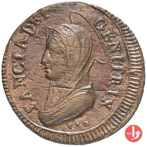 quattrino Obverse: Stemma ovale sagomato. Inizio della legenda da sinistra in basso: PIVS SEXTVS - PON M A XX Reverse: Figura di San Feliciano. Inizio della legenda da sinstra in basso: S • FELI - CIANO | |