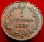 1 centesimo Dritto: Testa del Re a sinistra, intorno: VITTORIO EMANUELE II RE D'ITALIA. Sotto il collo la F iniziale di FERRARIS. Verso: Valore (1 CENTESIMO) e millesimo su tre righe contornato da rami di alloro, in alto la stella Italiana e in basso il segno di zecca. | |