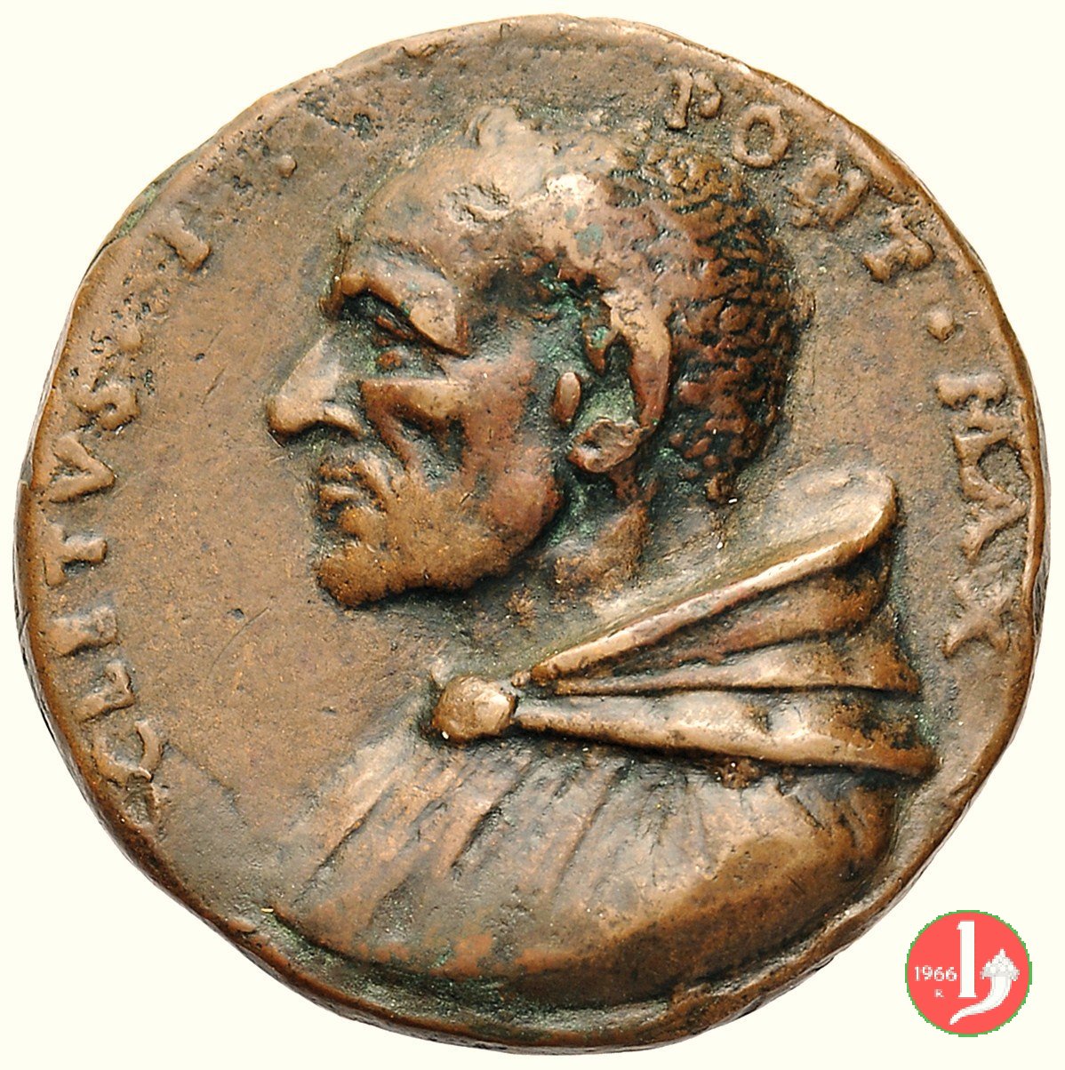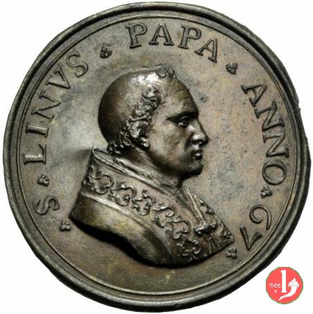 Verso: nel campo: NATVS = IN GALILAEA = PATER IONA = APOSTOLVS IESV CHRISTI = ANDREAE APOSTOLI FRATER = A - CHR • XLV • D • XVIII • IANVARII = EPISCPATVM ROMAE = INCHOASSE CREDITVR = EIQVE FRAEFVISSE = ANNOS XXIV • MENS • V • DIES • XII • = SVB NERONE = A • CHR • LXIX • D • XXIX • IVNII = CVM PAVLO APOST • = PASSVS = EST