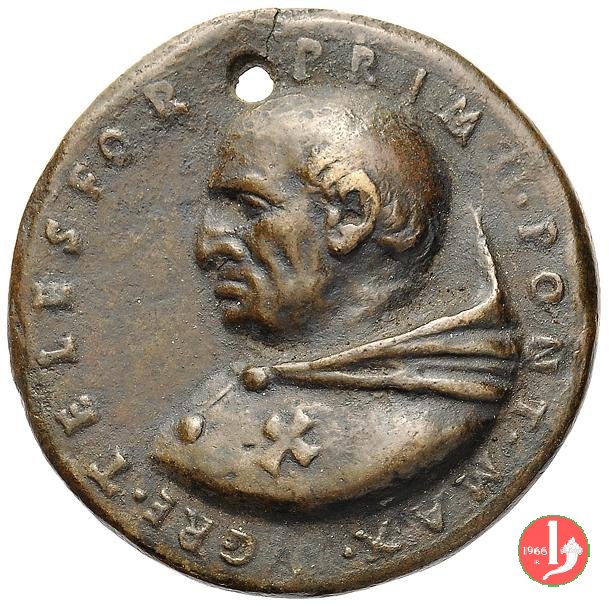 Verso: nel campo: NATIONE GRECVS = EX ANACORETA = FACTVS PONTIFEX MAX • = A • CXLII • D • IX • APR • = APOSTOLICAM TSADITIONEM = DE QVA