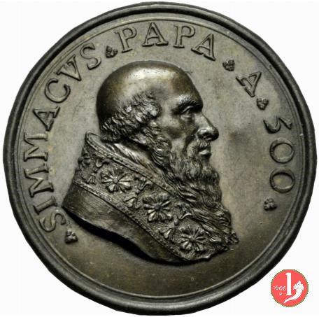 Verso: nel campo: * = NATVS ROMAN = PATRE PROTECTO = SVCCESSOR BONIFACIO DATVR = A. DXXXI. = ANTONIVM = PATRIARCH. COSTANTINOP. = OB HABRESIS = EX COMVNICAVIT = EPISTOLAM SCLIPSIT = AD VALERIVM = DE PERSONA ET DIVINITATE = CHRISTI = A. DXXV. D. XXVI. IVNII = OBIIT. = *