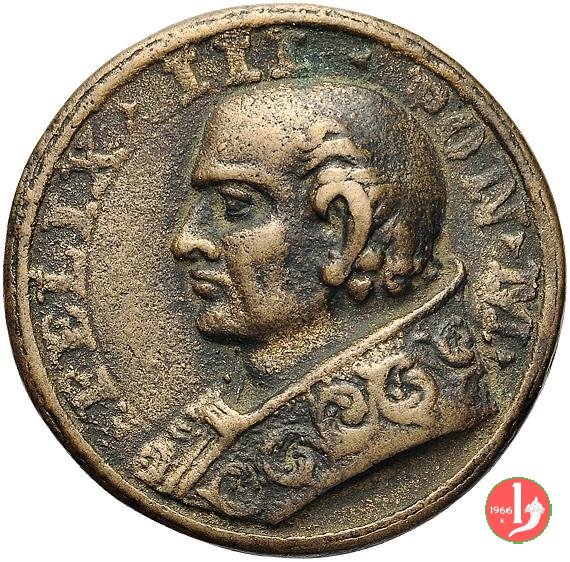 Verso: Stemma Papale (leone su nastro obliquo) su chiavi decussate e coronato da triregno