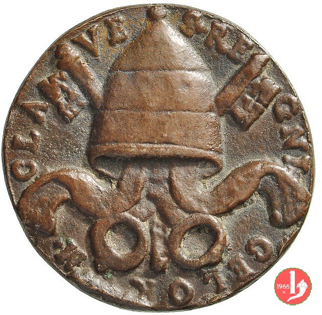 Verso: Stemma papale vuoto su chiavi decussate e coronato da triregno