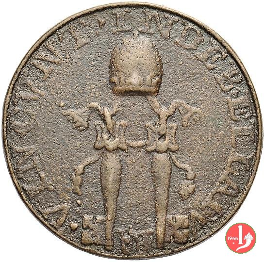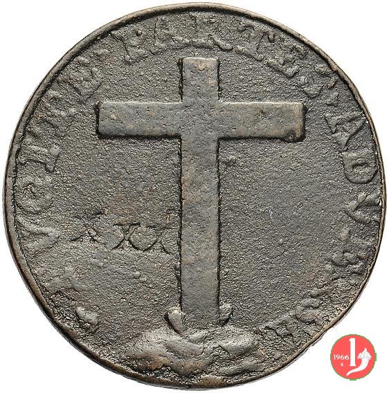 Verso: Stemma vuoto su chiavi decussate e coronato da triregno (lati convessi in basso)