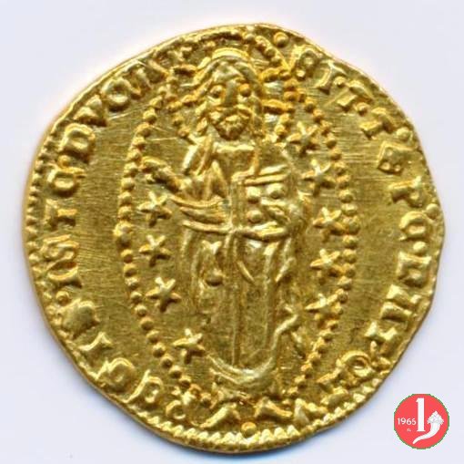Ducato Dritto: ANDR • 9TARENO • S • M • VENETI, S.Marco stante porge il vessillo al doge inginocchiato, lungo l'asta DVX Verso: SIT • T • XPE • DAT' Q TV REGIS • ISTE • DVCAT', il Redentore stante inn mandorla stellata | |