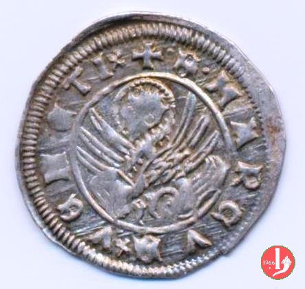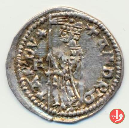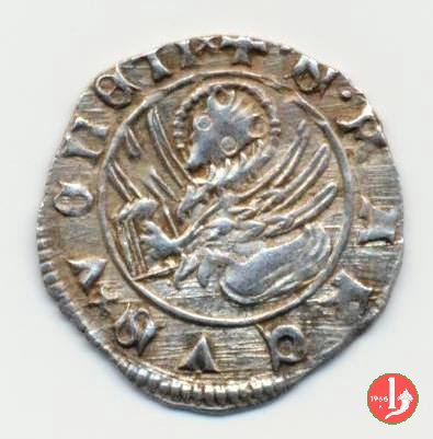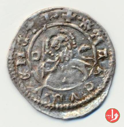 Soldino (Leone rampante) Dritto: ✠ ANDR' 9TAR DVX, il doge inginocchiato a sinistra regge il vessillo Verso: ✠ • S • MARCVS • VENETI • , leone rampante a sinistra con vessillo, in campo a sinistra iniziale del massaro | |