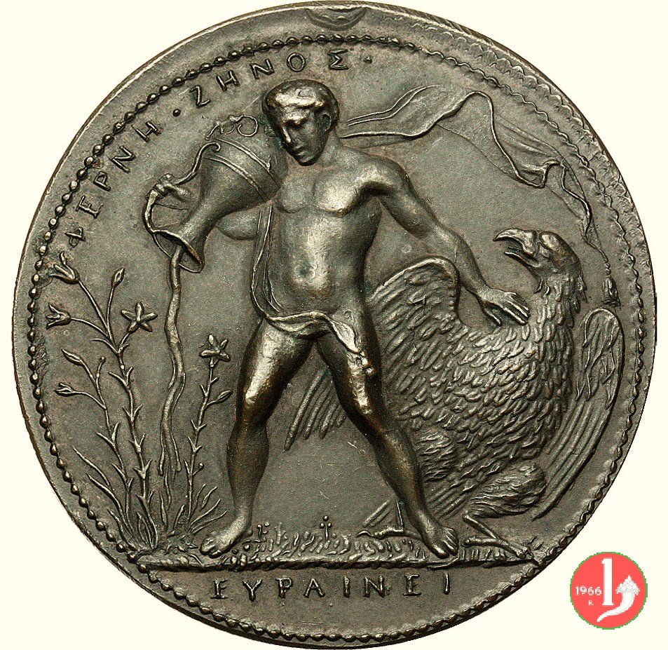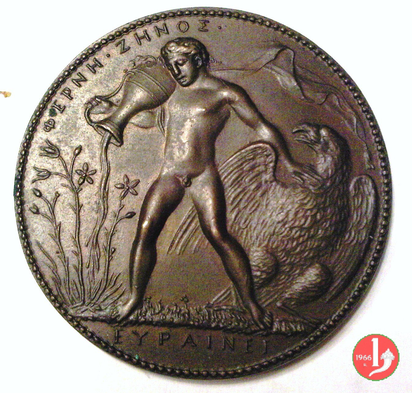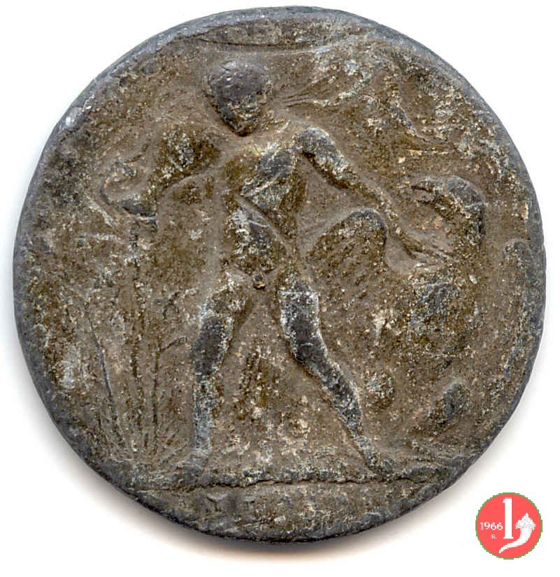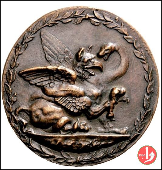 Verso: nel campo, centralmente, entro rami d'alloro e palma, sopra a tre spighe di grano: NIKHTHPION