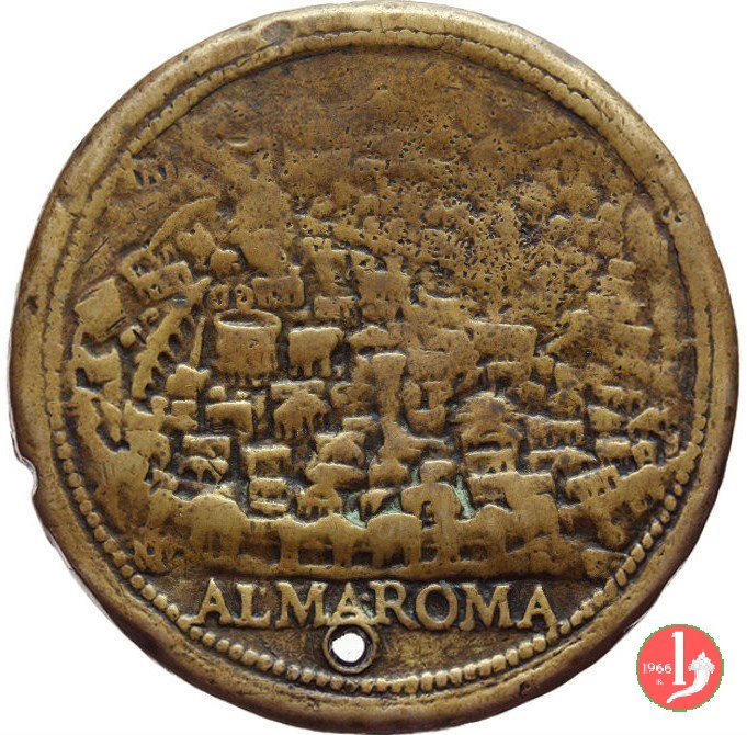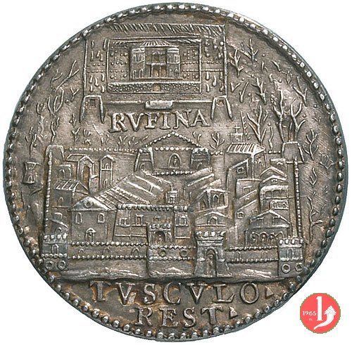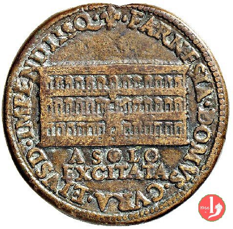 Verso: ✠ MEMORIAE ✠ = ✠ AETERNAE ✠ = PAVLI III FARNESII PON = • OPT MAX AVI • SVI • = ALEXANDER • FARNESIVS • = • CARD • VICECANCEL • = MONVMEN • AERE • PVBLICO = • INCHOATVM • ADIECTA • = • DE • SVO • PECVNIA • = • PERFECIT • AN • IVB • = • M • D • LXXV • = •