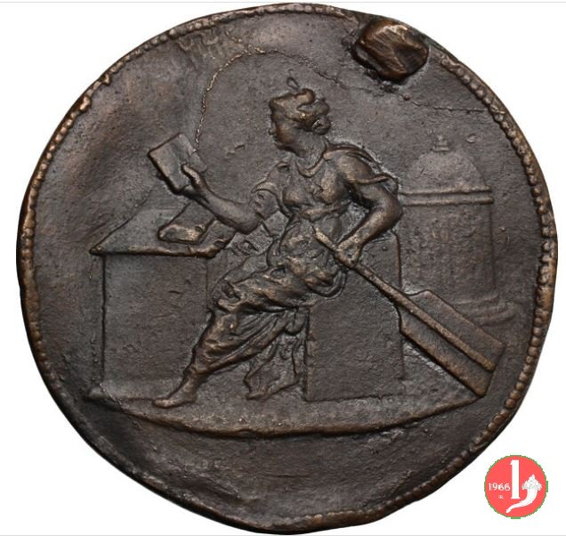 La figura allegorica della saggezza, seduta verso sx, ad un tavolo, legge libro e regge timone, alle sue spalle faro
