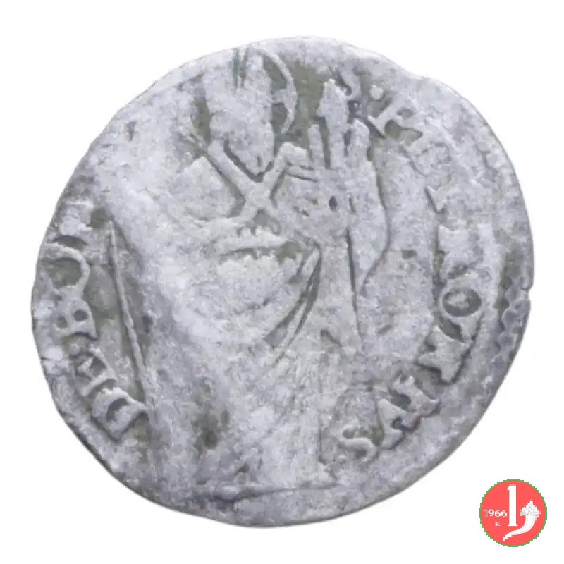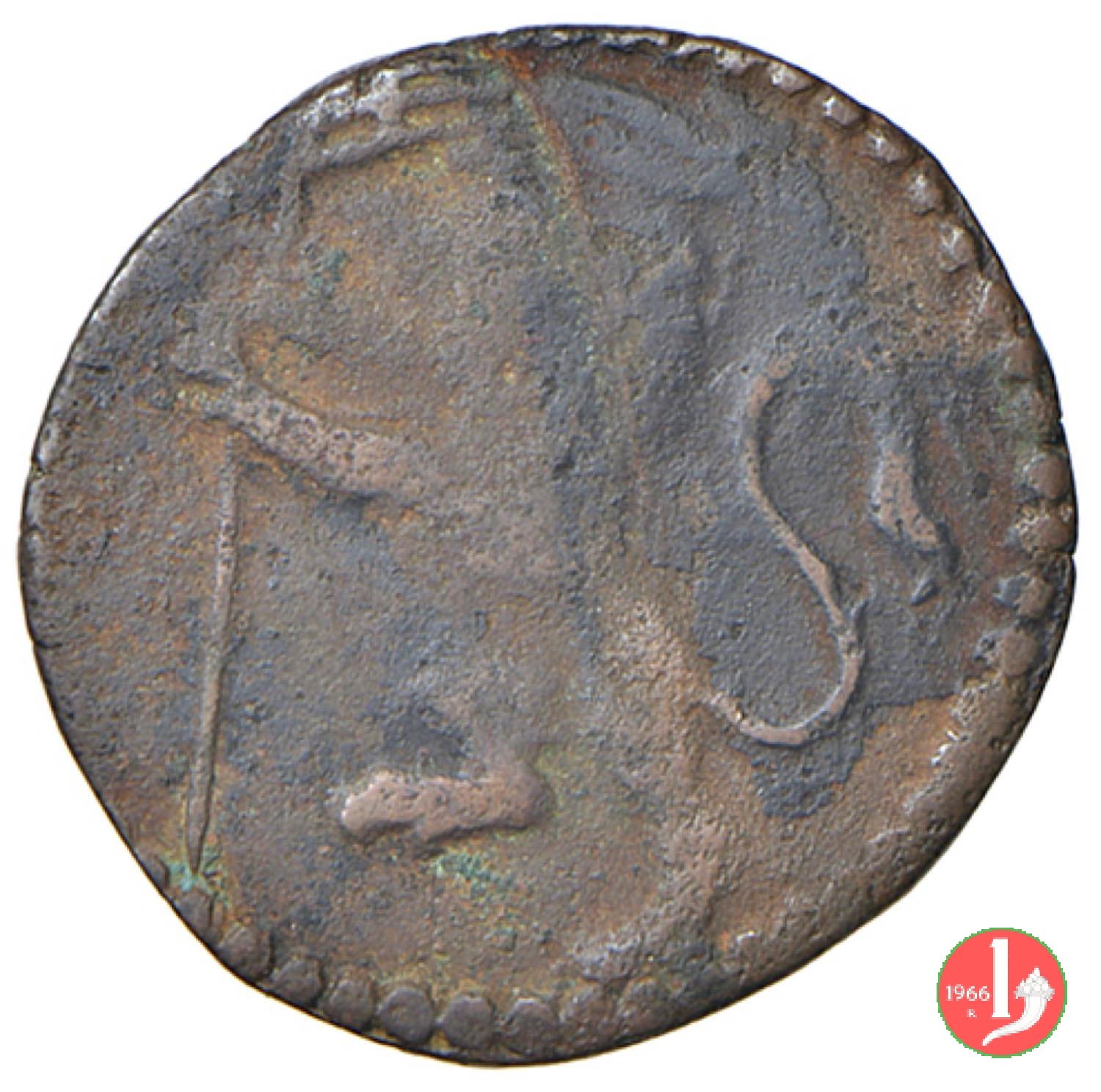 quattrino Dritto: Leone rampante a sinistra con vessillo Verso: Nel campo, su tre righe, BONO / NIA / DOCET; in esergo millesimo | |