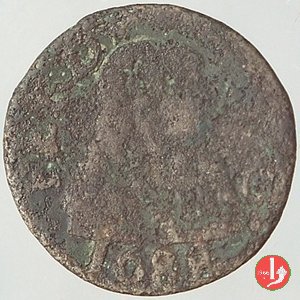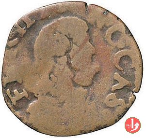 Sesino o quattrino con busto e scritta 1688 Obverse: • FERD * * II • D • G • Busto a destra con lunga parrucca; in esergo, data. Nel campo: scritta * // PRI • // *CAST* // ET C • // * su cinque righe. | |