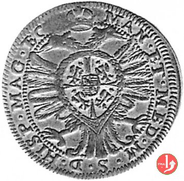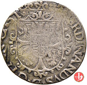 1/3 di tallero Obverse: * FERDINANDVS • II • SAC • RO • IMPER • Busto corazzato a destra, con lunga parrucca. Tre scudi (nell'ordine: Medole, Castiglione e Solferino) disposti a triangolo e sormontati da corona principesca; sotto, una torre. | |