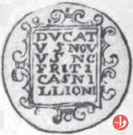 Ongaro o Fiorino con San Ferdinando senza data Obverse: SANCTVS • FERD VSNANDVS • IO San Ferdinando stante, a testa nuda. Nel campo: DVCATVS NOVVS NC FRITI CASNILLIONI, su sei righe entro cartella quadrata riccamente ornata. | |