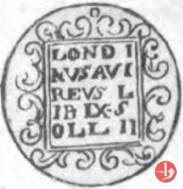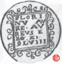 Ongaro o Fiorino col leone rampante Obverse: Anepigrafe Leone rampante a sinistra, con scudetto pendente dalle zampe anteriori. Nel campo: FLORINVS AVRE • AVREVS • H RB • XI • SOL VIII in sei righe, entro cartella quadrata riccamente ornata. | |
