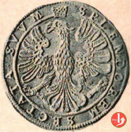Da 8 soldi con busto a s. Obverse: * FER * D * G * CAST * PRIN * Busto paludato a sinistra, con lunga capigliatura. Sotto, * • 8 •. Aquila coronata ad ali spiegate e biscione coronato, affrontati. In es., * data *. | |