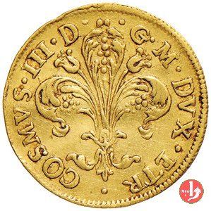zecchino Dritto: (da sinistra) COSMVS • III • D • • G • M • DVX • ETRVR il giglio di Firenze con due fiori; Sotto • sotto nel giro (anno in cifre) | |