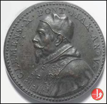 Elezione e incoronazione - M5 Obverse: CLEMENS • X • PONT • MAX • AN • I (punti celtici) busto con camauro, mozzetta e stola a sx sul taglio spalla: • ALB • sotto: HAMERANO • F San Pietro Martire in piedi, di fronte con ramo di palma vieme coronato da un'angelo in esergo: • S • PETRVS • M • sotto: • AH • | |